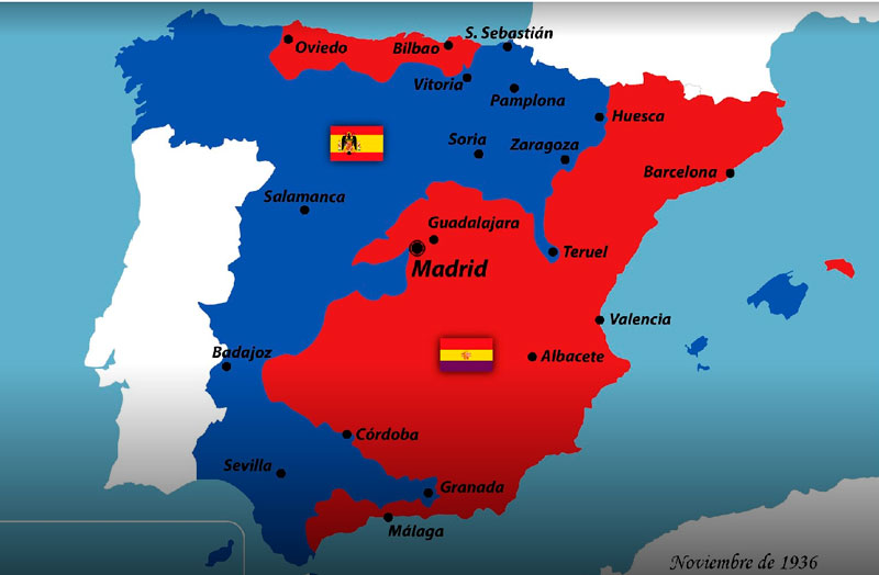 Het blijft onrustig in het land en in 1936 zijn er opnieuw verkiezingen, het linkse Frente Popular wint nu. Een nieuwe staatsgreep datzelfde jaar mondt uit in de burgeroorlog tussen de republikeinen (een mengeling van politieke overtuigingen die voor het gemak als ‘rojos’ werd bestempeld) en de fascisten. Volgens schattingen vallen er ruim 700.000 slachtoffers, het merendeel ‘rojos.’