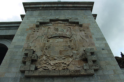 Op de hoeken van de galerijen die naar de ingang leiden staan enorme afbeeldingen van het wapen van Spanje in de stenen uitgehakt, inclusief de verboden adelaar en het symbool van de Falange (Spaanse SS). We gaan de basiliek binnen, een enorm lange gang met wandtapijten en nisjes met beelden van heiligen leidt naar het deel met de banken en een altaar. Het voelt een beetje raar hier, omdat er nergens ramen zijn of omdat we het zelf allemaal wat luguber vinden? In de vloer zitten roosters waar warme lucht uitkomt. Ook hier weer nergens informatiepanelen dus we maken een praatje met een bewaker.