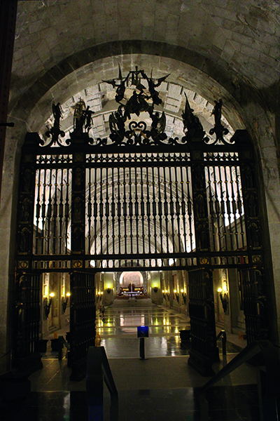 Boven het altaar is een enorme beschilderde koepel, precies daarboven staat het 150 meter hoge kruis op de berg. Het geheel binnen lijkt wel wat op de Sint-Pieter in Vaticaansstad. En dat is ook precies de reden dat er halverwege de gang richting altaar ijzeren hekken staan. De basiliek zou anders groter zijn geweest dan de gebouwen in Vaticaanstad en dat ging Paus Johannes XXIII wat te ver.